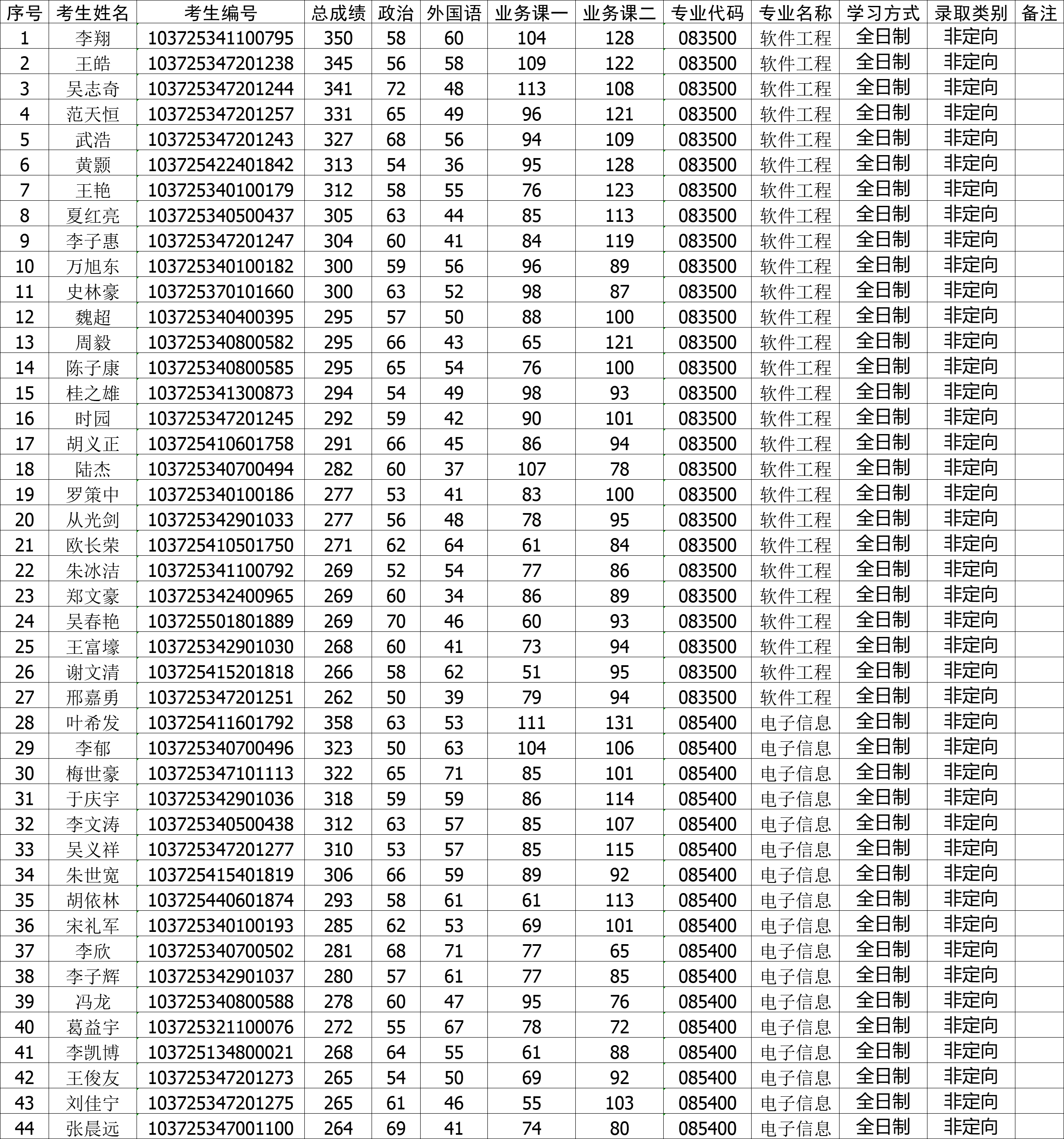 2025年计算机与信息学院硕士研究生复试名单(一志愿)